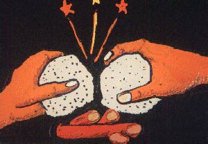 たきぎを用意して、カチカチと火をすったところが、やまんばが目をさまいて「はあ、カチカチ鳥が鳴いたぞ、もう夜が明けえさなが」てって、